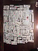 This little project has been coming together for a while now...in between bigger paintings, to keep my hands moving, i'd paint little sharp things on scraps of paper laying around my studio. So now i've put them into blind bags with some stickers and stuff.