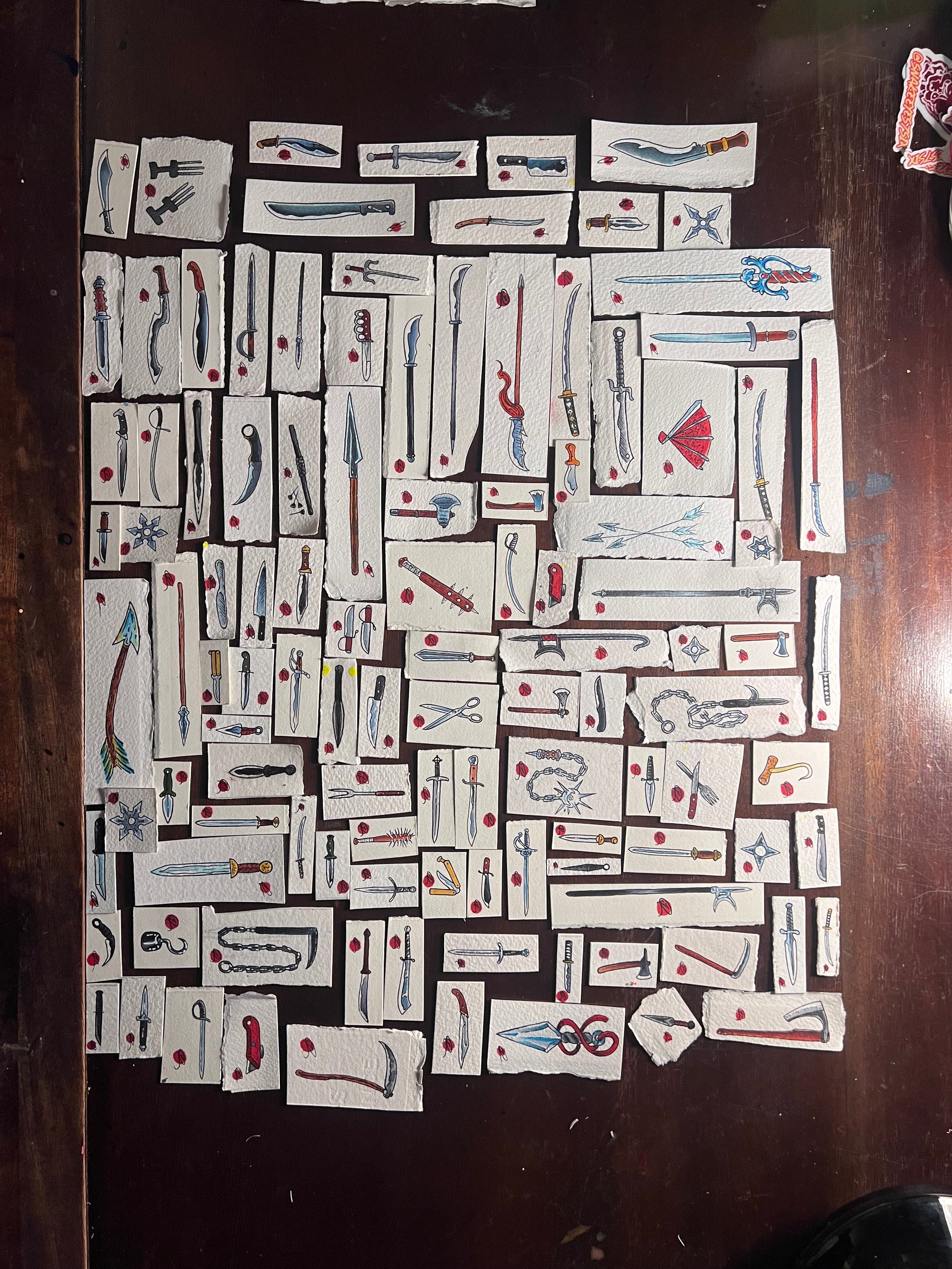 Tiny sharp things painted on scraps of paper laying around my studio...