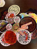 each pack will contain a tiny painting or two, some stickers and maybe a button.