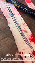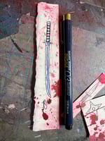 Tiny katana painted on a limited run of 'blood splatter' paper ...1x6 ...acrylic on paper ...